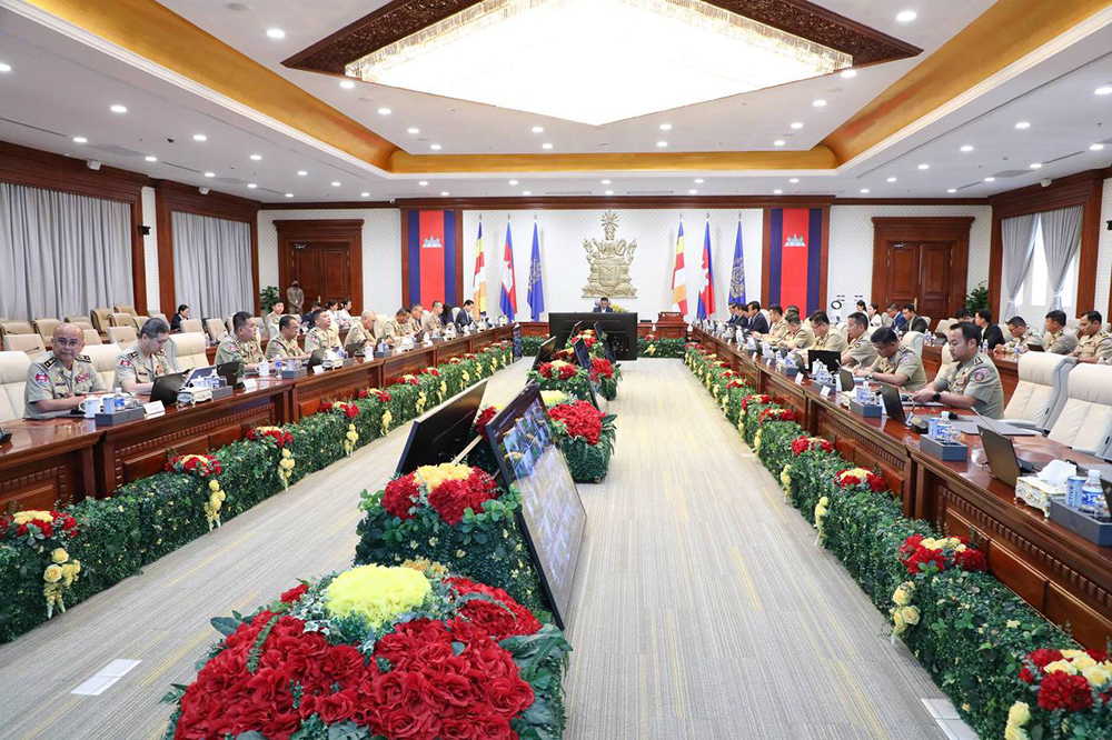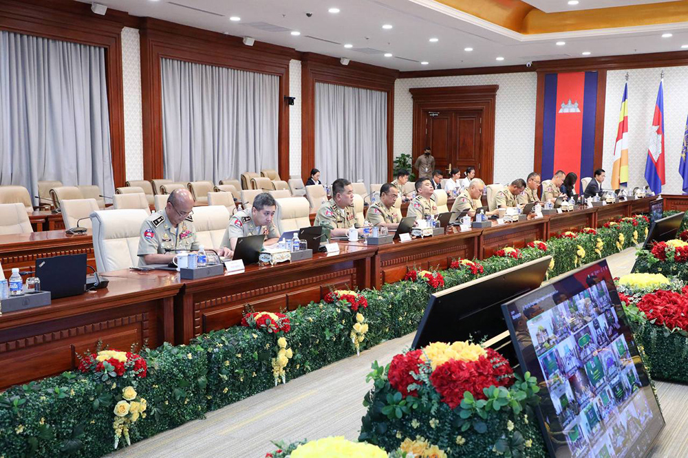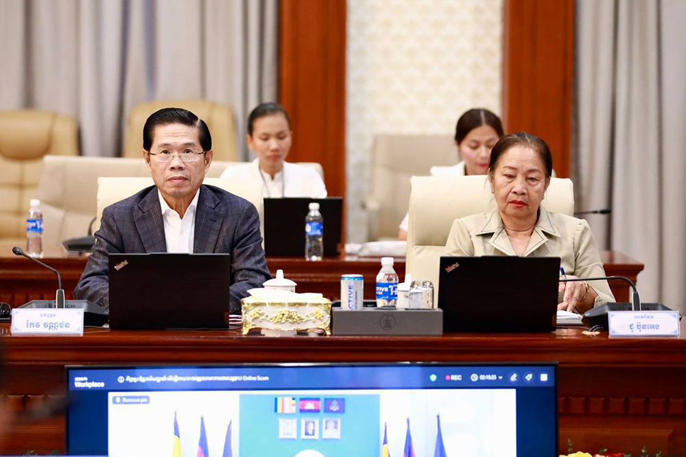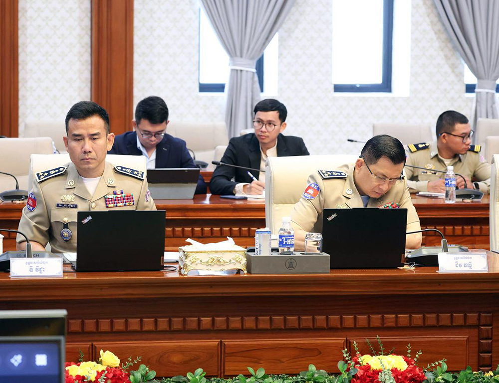 H.E. Abhisantibindit Sar Sokha (Pic. 1), Deputy Prime Minister and Minister of Interior, chairs here at the Ministry this morning a meeting to assess the work progress on online scam crackdowns.