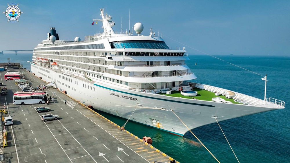 "Crystal Symphony" cruise ship carrying 427 tourists of 28 different nationalities, 212 of whom are women, is paying a day-long visit to Cambodia.