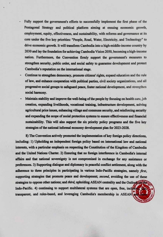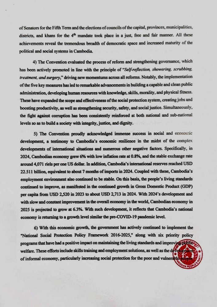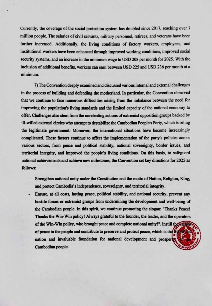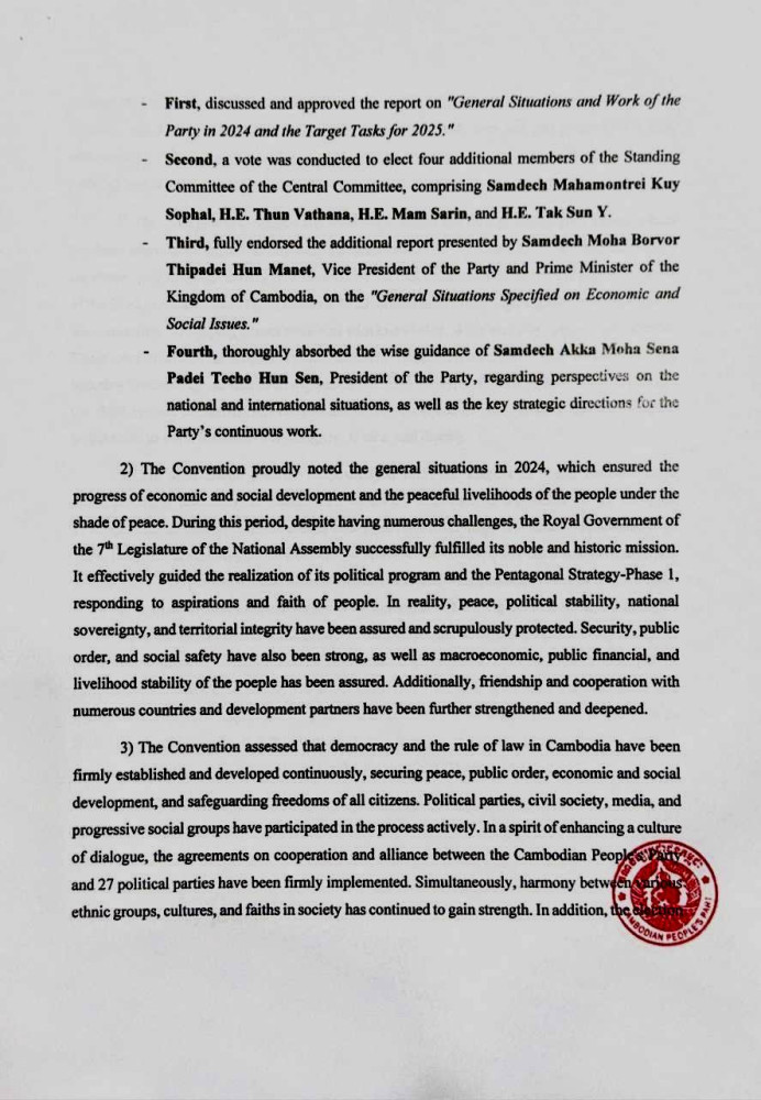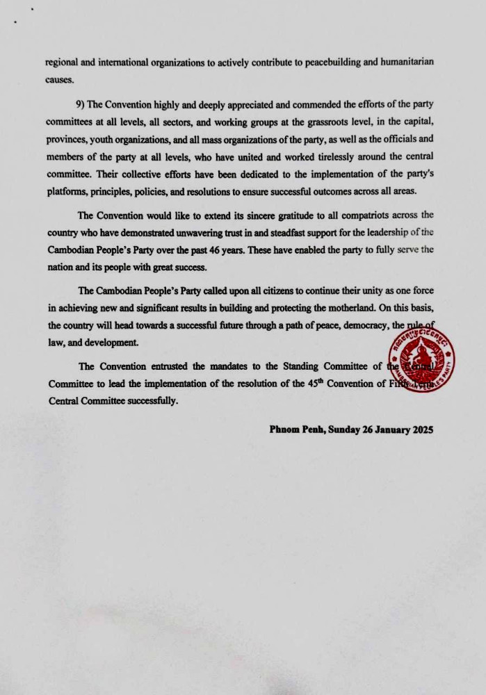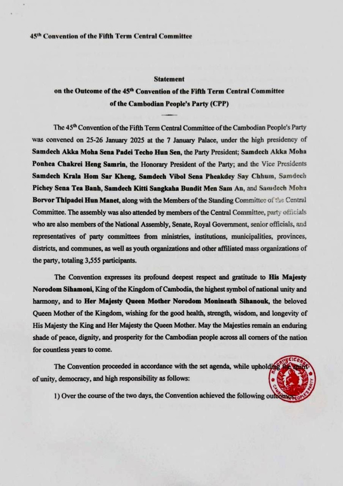 The ruling Cambodian People’s Party (CPP) this evening released a six-page statement on the outcome of 45th Central Committee Conference, at the end of the two-day meeting.