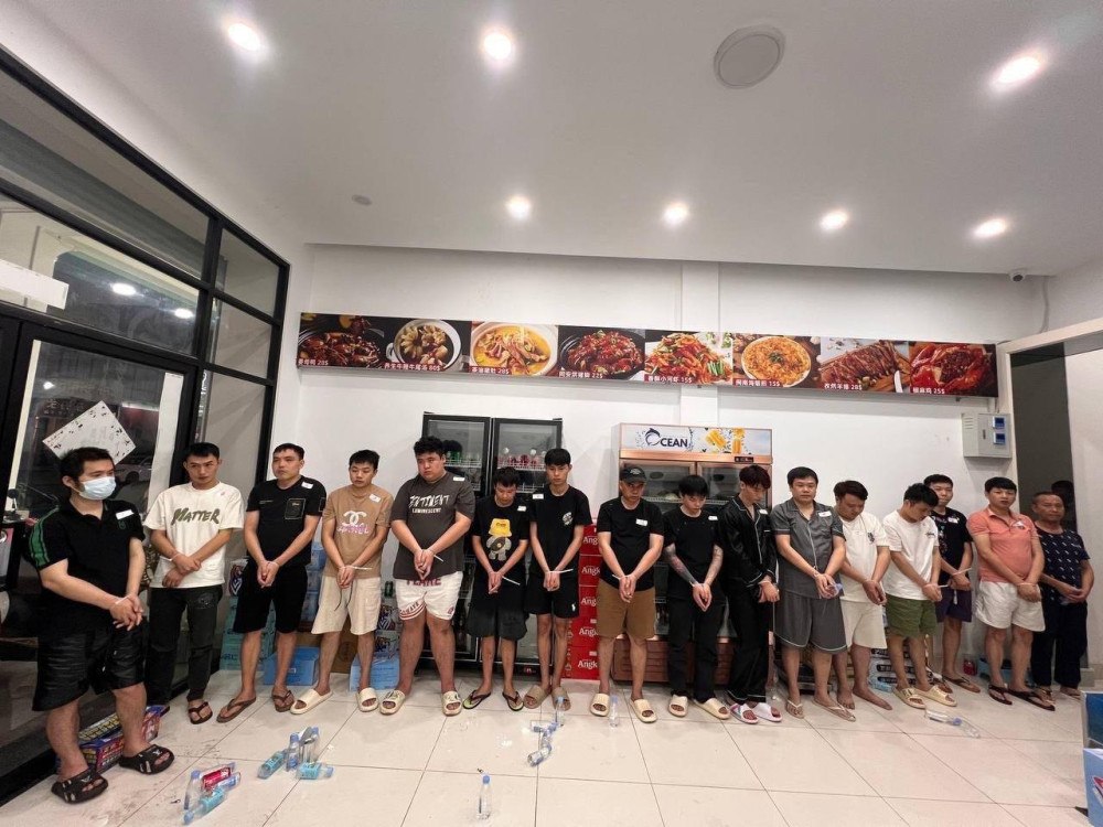 During the crackdown, officials identified one house as an active site for online scam activities. At the property, located along Street C01 in Kdey Takoy village, authorities arrested 17 men, including 16 Chinese nationals — 13 of whom were found without passports — and one Vietnamese national.