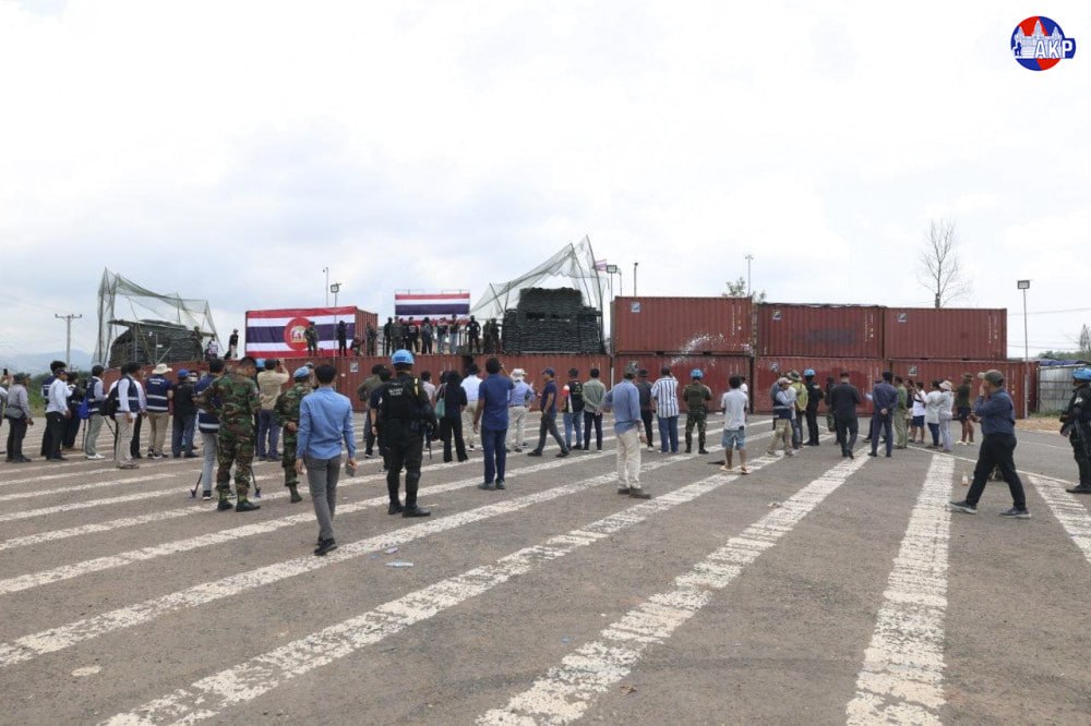 The delegation also observed conditions at the Chey Chumneah border checkpoint in Thmar Da commune, where Thai military personnel have placed barbed wire and shipping containers, including three additional ones installed on Mar. 26, 2026, blocking National Road 55 and restricting access to the homes and lands of the displaced residents.