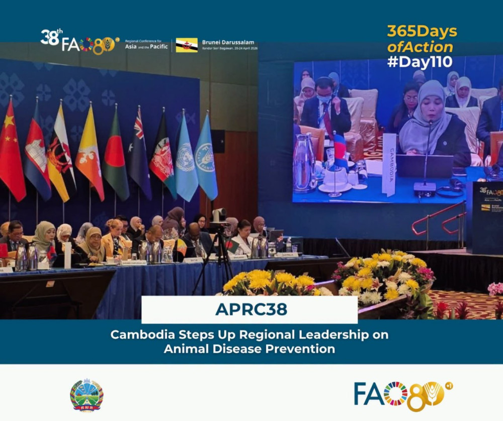 Cambodian delegation, led by H.E. Ms. Yoeu Asikin, Under Secretary of State, Ministry of Agriculture, Forestry and Fisheries, represented the country at the Opening of the Senior Officers Meeting (SOM) of 38th Session of the FAO Regional Conference for Asia and the Pacific, held on April 20 in Brunei Darussalam.