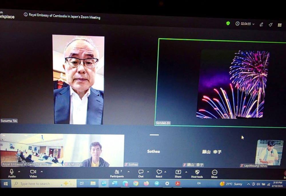 On April 18, a preparatory meeting was organised at the embassy under the chairmanship of H.E. CHUM Sounry, Ambassador-Designate of the Kingdom of Cambodia to Japan and Chairman of the Cambodia Festival Committee. It was conducted in a hybrid format, with participation both in person and online by vice-chairpersons and committee members, the Honorary Consul of Cambodia in Sendai, heads and members of various working groups, Cambodian and Japanese supporters of Cambodian culture, as well as the embassy’s officials and staff.