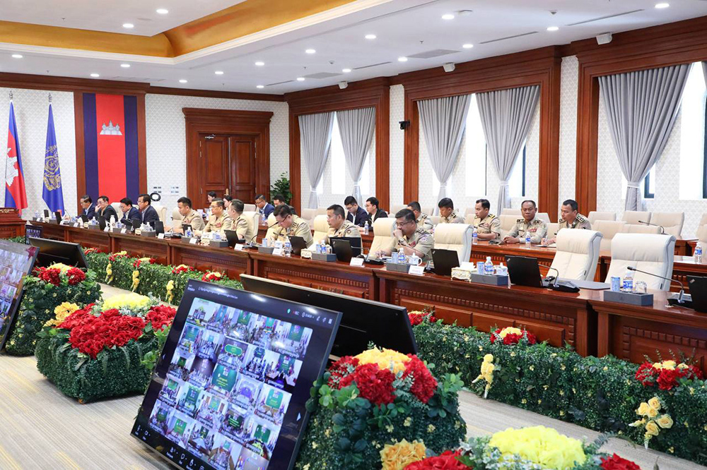 H.E. Abhisantibindit Sar Sokha (Pic. 1), Deputy Prime Minister and Minister of Interior, chairs here at the Ministry this morning a meeting to assess the work progress on online scam crackdowns.